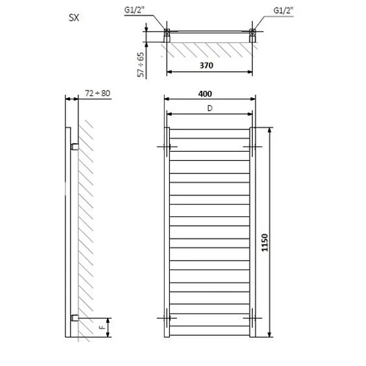 Рушникосушка біла RAL 9016 SOFT TERMA VIVO 1150x400 мм водяна SX