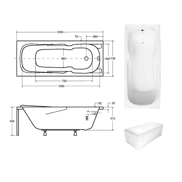 Ванна прямокутна BESCO MAJKA NOVA 120x70 2023008