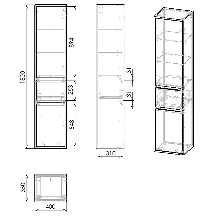 Пенал підвісний 180x40 IMPRESE BILOVEC дуб крафт