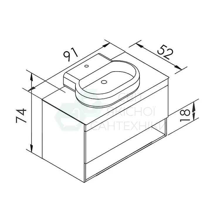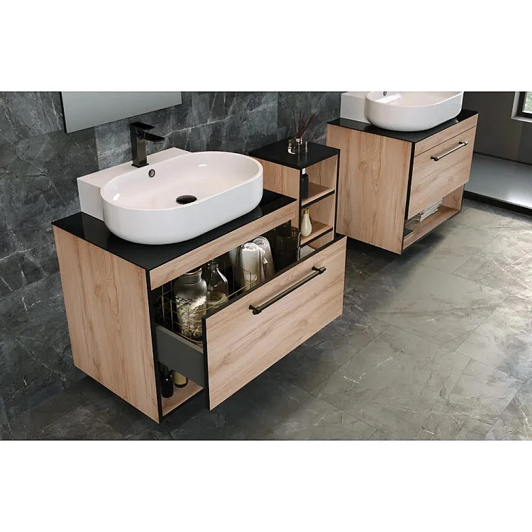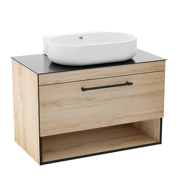 Тумба з накладним умивальником 90 см IMPRESE BLACK EDGE дуб