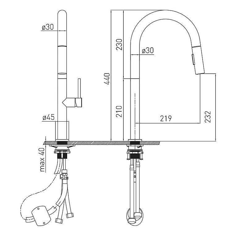 Змішувач для кухні з висувним виливом VOLLE BRAVO C 1500.110304 чорний