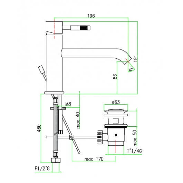 Чорний змішувач для умивальника FIORE XENON 44NN5284