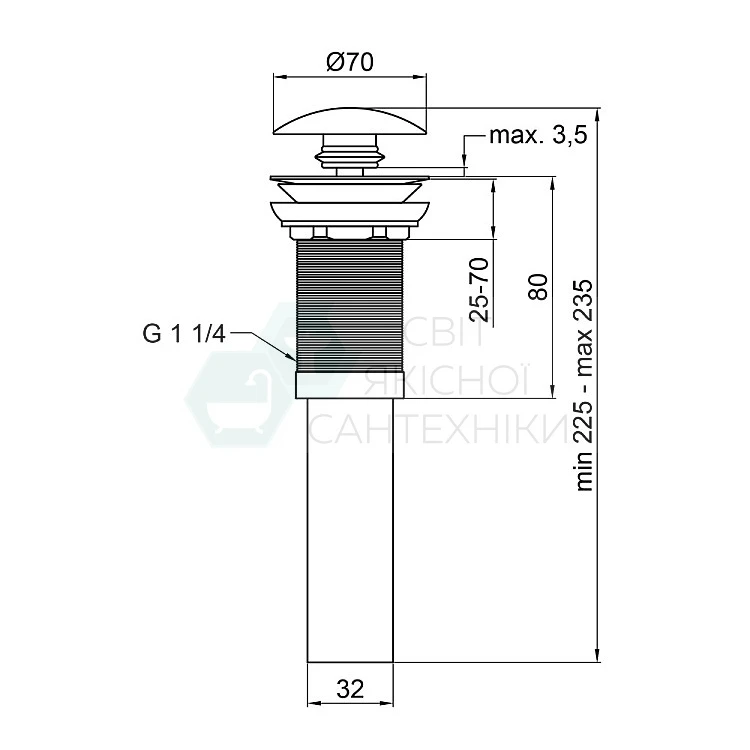 Донний клапан Qtap PU02 70х70х227.5 White