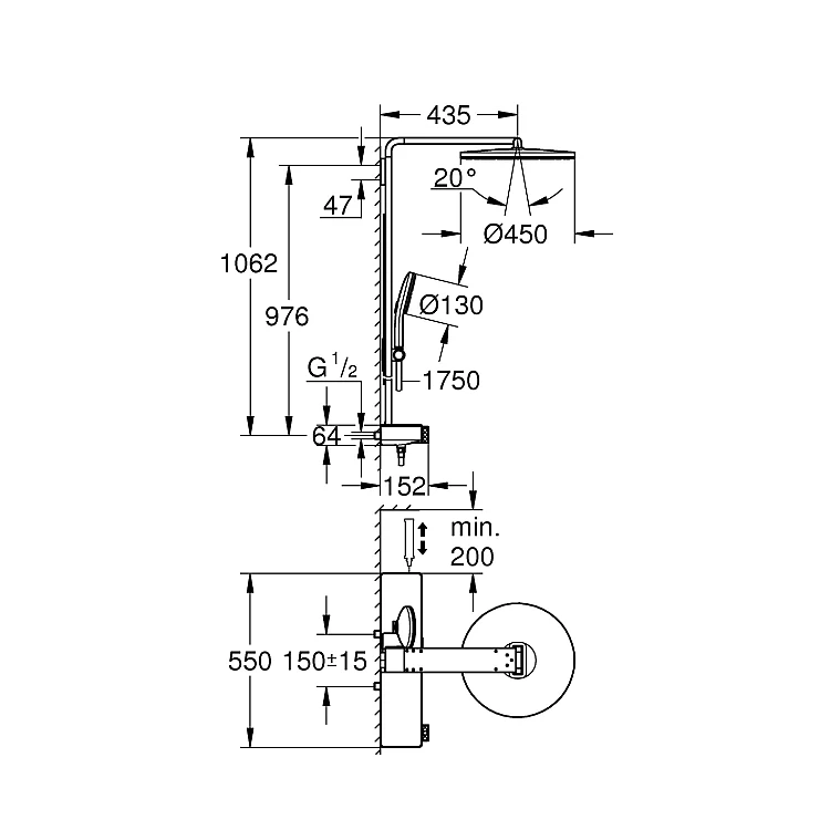 Душова система GROHE SPA Rainshower Aqua Pure з термостатом, настінна, матове золото, 101680GN00