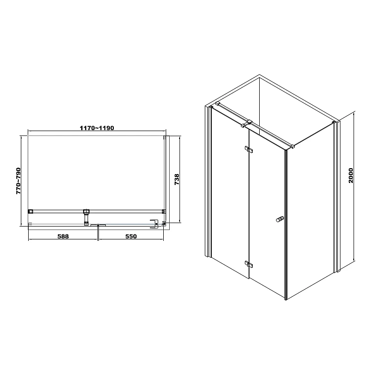 з відкриваючими дверима, без пiддона