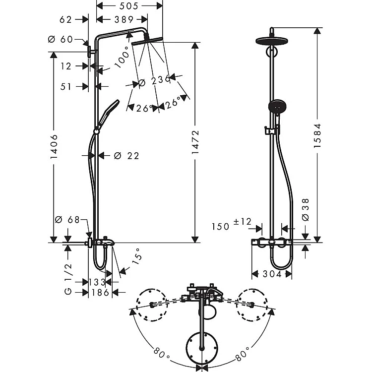 Душова система HANSGROHE RAINDANCE SELECT S SHOWERPIPE 27117000