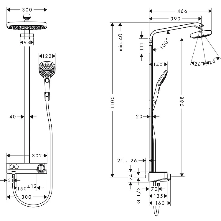 Душова система HANSGROHE RAINDANCE SELECT E SHOWERPIPE 27126400
