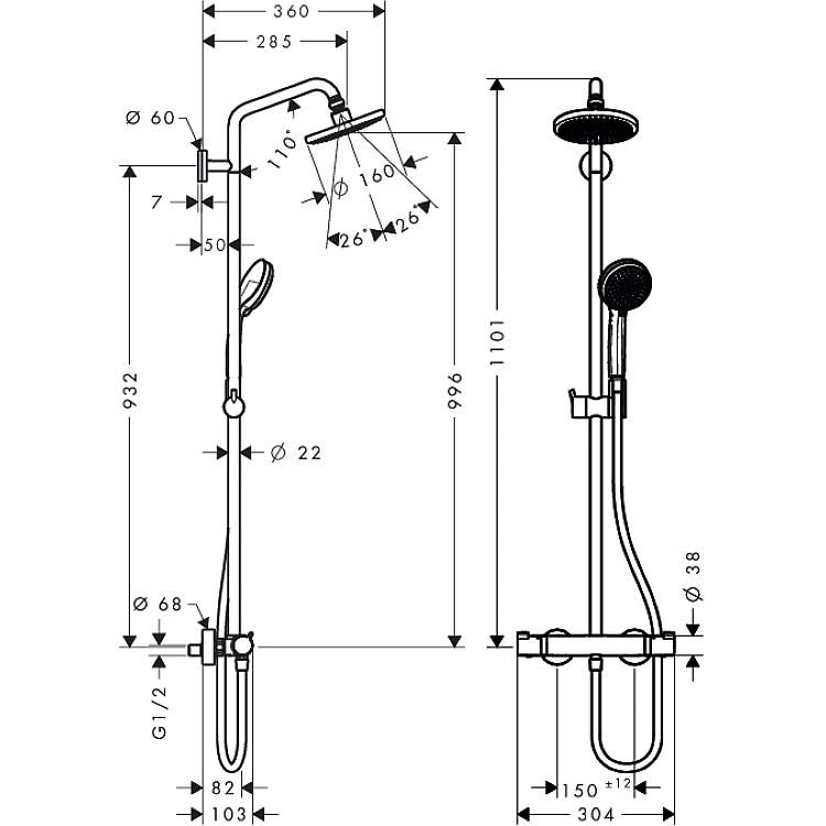 Душова система з термостатом HANSGROHE Croma 160 27135000