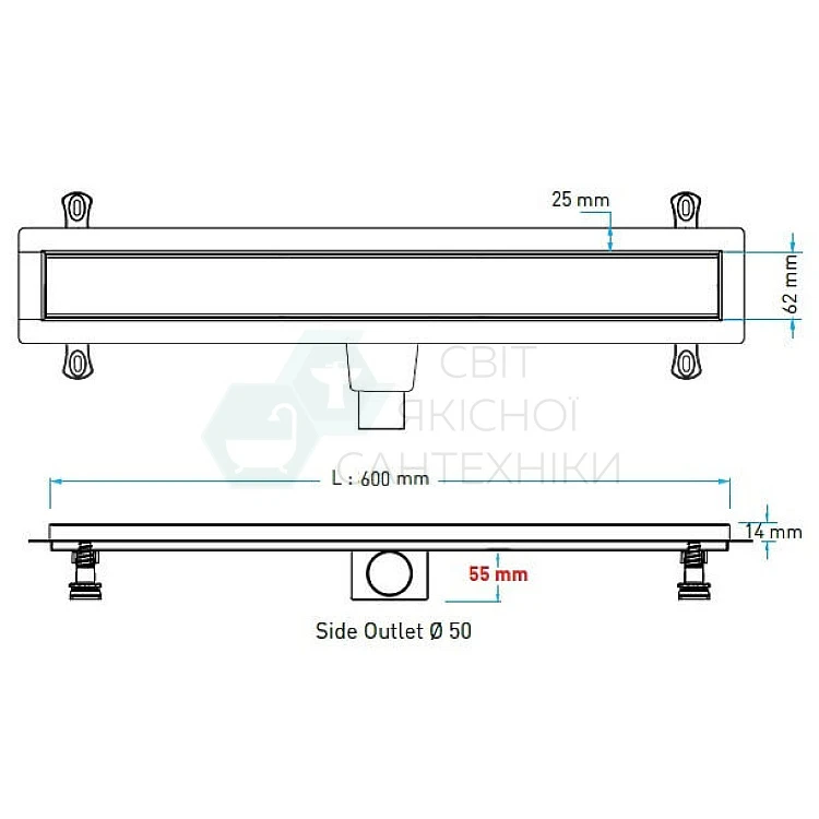 Опис товару - Душовий трап Valtemo Starline Trendy VLD-563320 600 мм, 50 бічній вихід