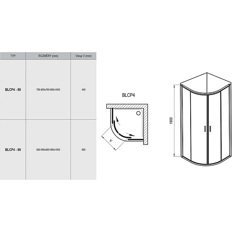 Душова кабіна Ravak Blix BLCP4-90 3B270100Z1 білий TRANSPARENT