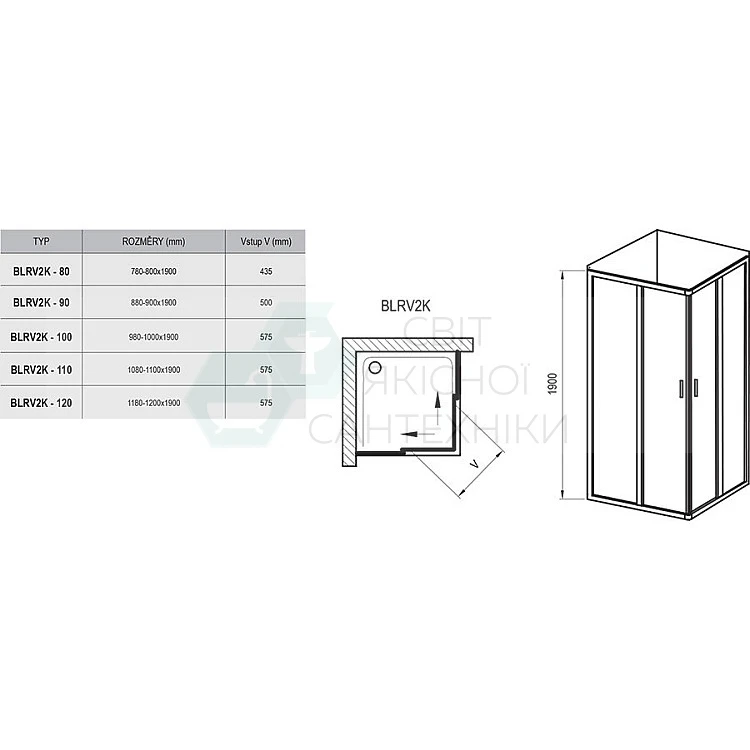Душова кабіна Ravak BLRV2K-80 1XV40U00Z1 сатин TRANSPARENT