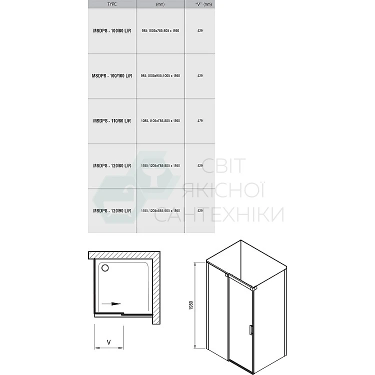 Характеристики - Душова кабіна Ravak Matrix MSDPS-110/80 R 0WPD4C00Z1 полірований алюміній TRANSPARENT