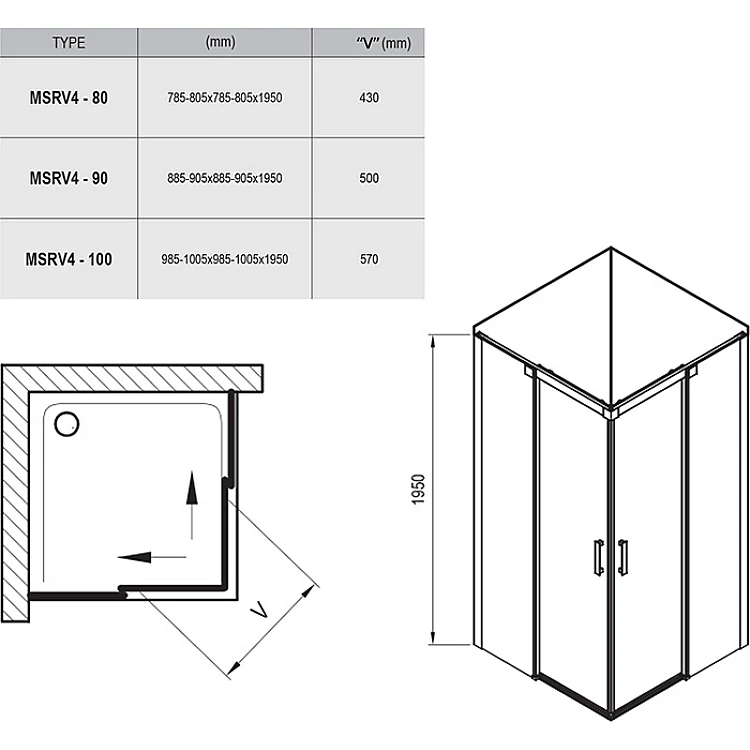 з розсувними дверима, без пiддона