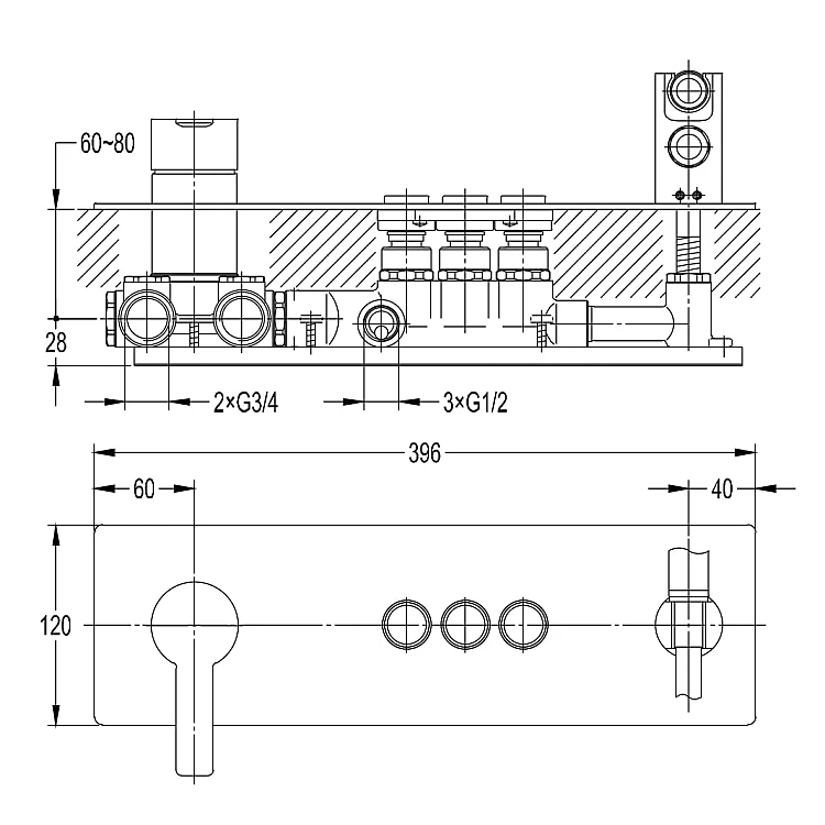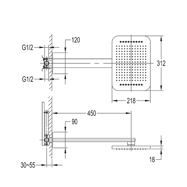 Душова система прихованого монтажу комплектація: змішувач, ручний душ, душовий шланг, стінове під'єднання з тримачем лійки, верхній душ, кронштейн для верхнього душу матеріал прихованої частини змішувача, ручки, приєднання, лицьової панелі, ручного душу, верхнього душу, кронштейна: латунь Kerox (Угорщина), 35 мм латунний кнопковий механізм Smart Click на 3 споживача з кнопковим перемиканням можливість одночасної роботи декількох функцій захист від зворотного потоку монтажний бокс з рівнем і прихована частина в комплекті верхній душ розбірний мм, G1/2" прямокутна декоративна розетка матеріал форсунок LSR (м'який силікон) кількість функцій ручного душу: 1 кількість функцій верхнього душу: 2 (Тропічний душ, Тропічний душ Air-Mix) душовий шланг PVC, G1/2", 150 см, Anti Twist витрата води для верхнього душу до 32 л/хв витрата води для ручного душу до 7 л/хв рекомендований тиск води: 1-5 ба р розміри під'єднань G3/4" підведення, G1/2" відведення поверхню хром