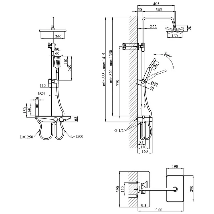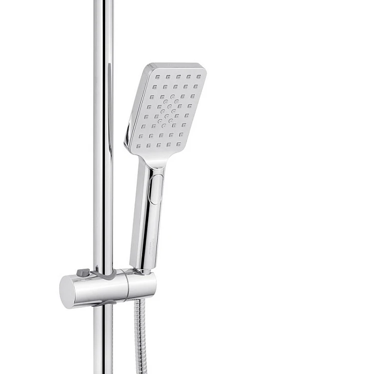 Душова система Kroner KRP Armada - W066 в елегантному білому кольорі з комбінацією хромованих елементів створює атмосферу свіжості та сучасного дизайну у вашій ванній кімнаті. Вона ідеально поєднує стильний зовнішній вигляд з практичною функціональністю, що робить її чудовим вибором для будь-якого інтер’єру. Використання високоякісної латуні та ABS-пластику забезпечує довговічність і надійність у щоденному використанні, а настінний спосіб монтажу робить установку максимально простою. Верхній душ прямокутної форми розміром 290x190 мм пропонує м'який і рівномірний потік води, створюючи відчуття розслаблення під час прийняття душу. Регульована душова стійка дозволяє налаштувати її висоту від 820 до 1350 мм, що забезпечує комфорт для користувачів будь-якого зросту. Верхній душ з хромованими деталями додає розкішного вигляду та гармонійно виглядає на білому фоні. Ручний душ з трьома режимами струменя, розміром 80x110 мм, дає можливість вибору між різними типами струменів: м’яким дощем, інтенсивним потоком та економічним режимом для збереження води. Шланг довжиною 1500 мм забезпечує зручність використання, дозволяючи вільно рухатися під час душу. Ця модель також оснащена гігієнічним душем зі шлангом довжиною 1250 мм, що додає функціональності та гігієнічності у використанні. Це рішення робить душову систему Kroner KRP Armada ідеальним вибором для сучасних ванних кімнат. Система оснащена змішувачем з 35 мм картриджем, що забезпечує точне регулювання температури та напору води. Довжина виливу становить 85 мм, а кронштейн для верхнього душу має довжину 365 мм, що гарантує комфортне користування. Компактні розміри душової системи дозволяють легко інтегрувати її в будь-який простір: висота регулюється в межах від 885 до 1415 мм, ширина становить 390 мм, а глибина – 488 мм. Kroner KRP Armada - W066 у білому кольорі з хромованими елементами – це досконале поєднання сучасного стилю, зручності та функціональності для вашої ванної кімнати.