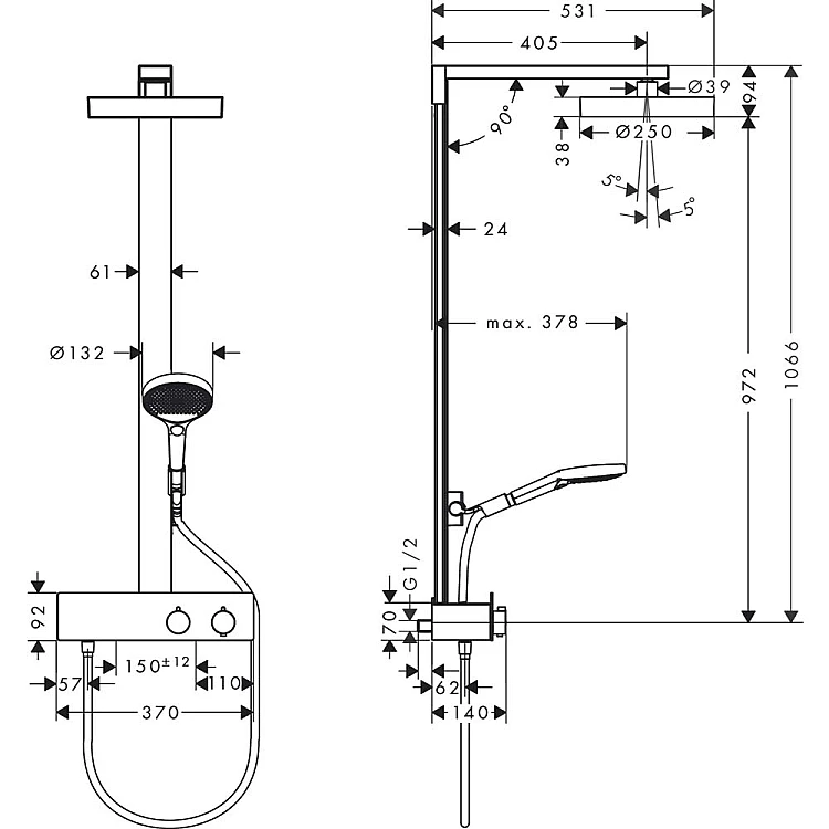 Отримайте AI поради по Душова система з термостатом Hansgrohe Rainfinity Showerpipes EcoSmart 28742700 Matt White