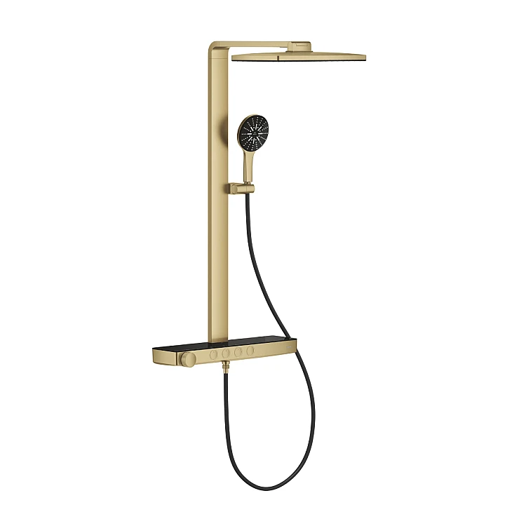Опис товару - Душова система GROHE Rainshower Aqua Pure з термостатом, настінна, золото матове, 100962GN00