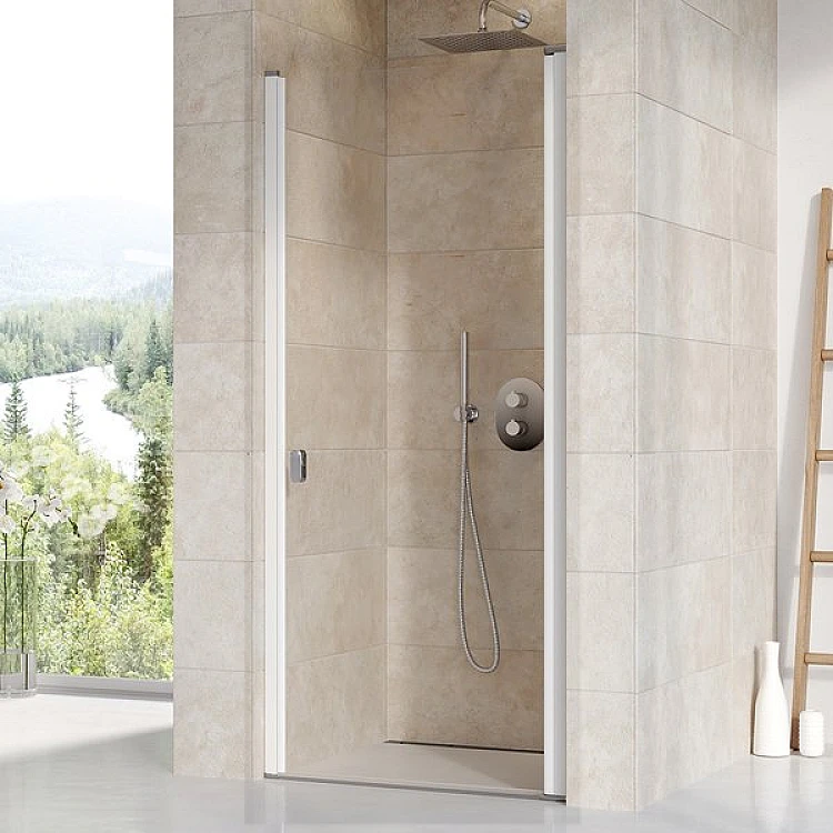 Ідеальне рішення для створення душового простору в ніші шириною 80 - 90 см. Для кращого провітрювання двері відкриваються усередину і назовні, забезпечуючи зручний вхід і відсутність неприємних крапель води на підлозі.