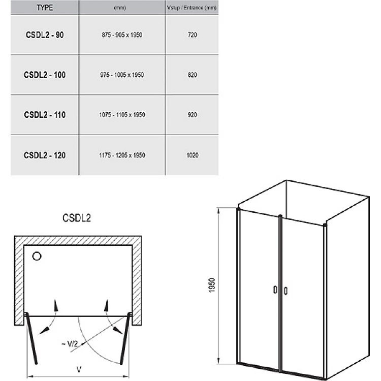 Характеристики - Душові двері Ravak Chrome CSDL2-110 0QVDC10LZ1 білий TRANSPARENT
