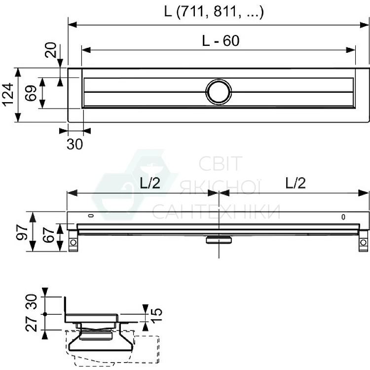 Душовий елемент (трап) TECE Drainline пристінний L - 1000 мм з гідроізоляцією 601001