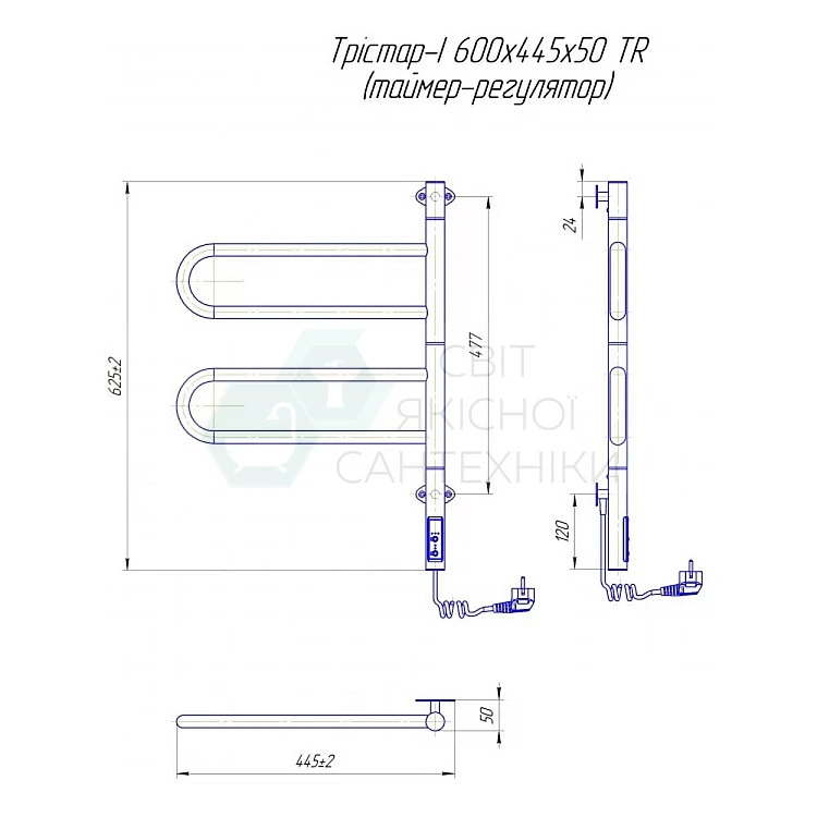 Електрична рушникосушка Mario Тристар-I 600x445x50 mar_207
