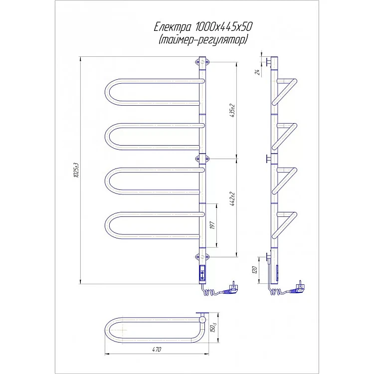 Електрична рушникосушка Mario Електра-I 1000x475х150 mar_204