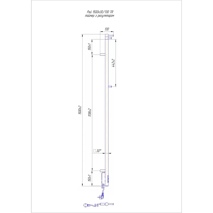 Електрична рушникосушка Mario Рей Кубо-I 1500x30/130 mar_221