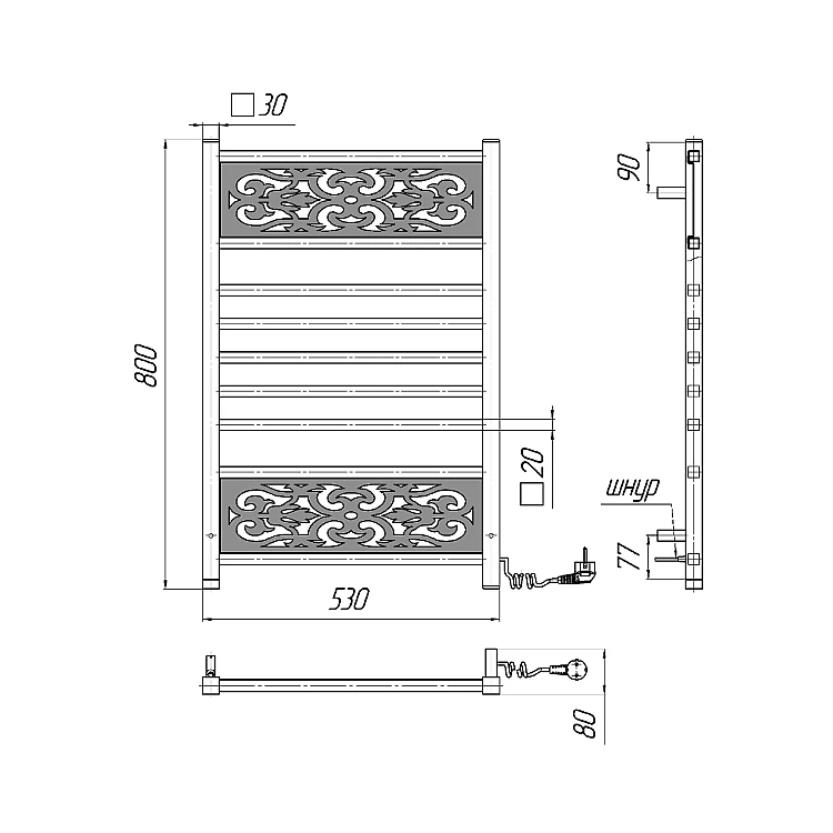 Електрична рушникосушка Mario Анталія-I 800x530/500 mar_228