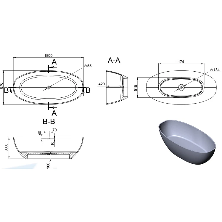 Ванна окремостояча Fancy Marble Mateo 180x87