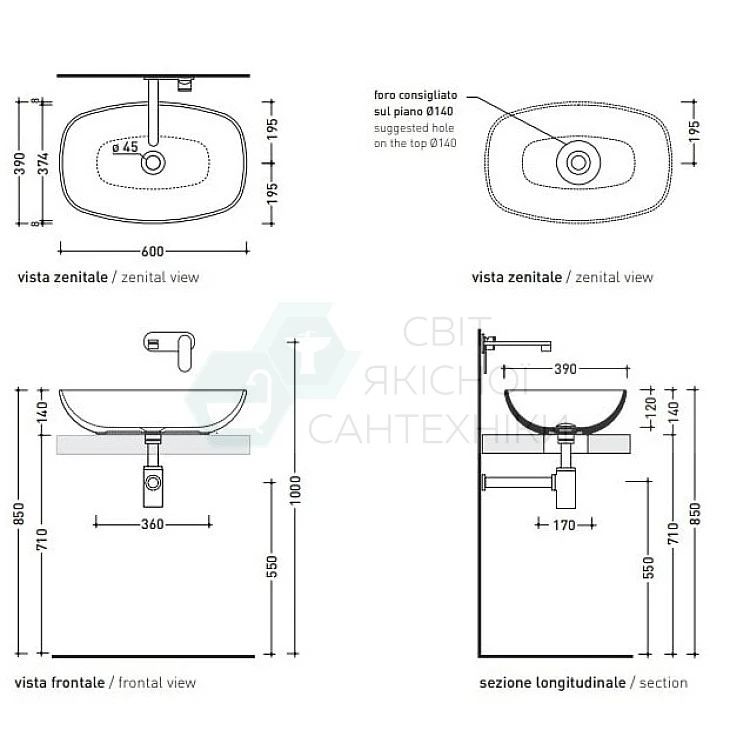 Умивальник Flaminia NUDASLIM 60x39 ND60A