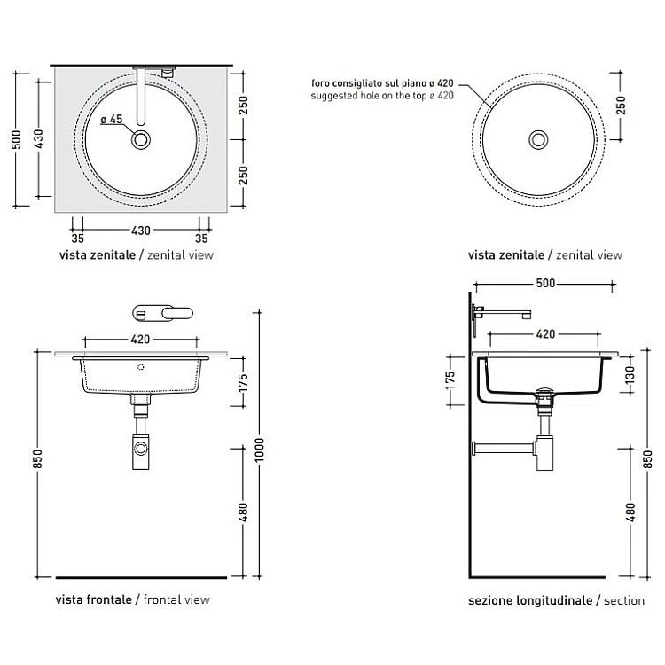 Умивальник Flaminia TWIN 42x42 5057 підкладний