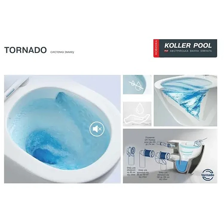 2. Унітаз підвісний Koller Pool Round Tornado RN-0520-RQ з сидінням Soft Close