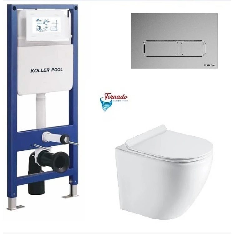 Характеристики - Інсталяція Koller Pool AQUA LINE + EDGE панель змиву + підвісний унітаз ROUND з сидінням Soft-close ( змив Tornado )