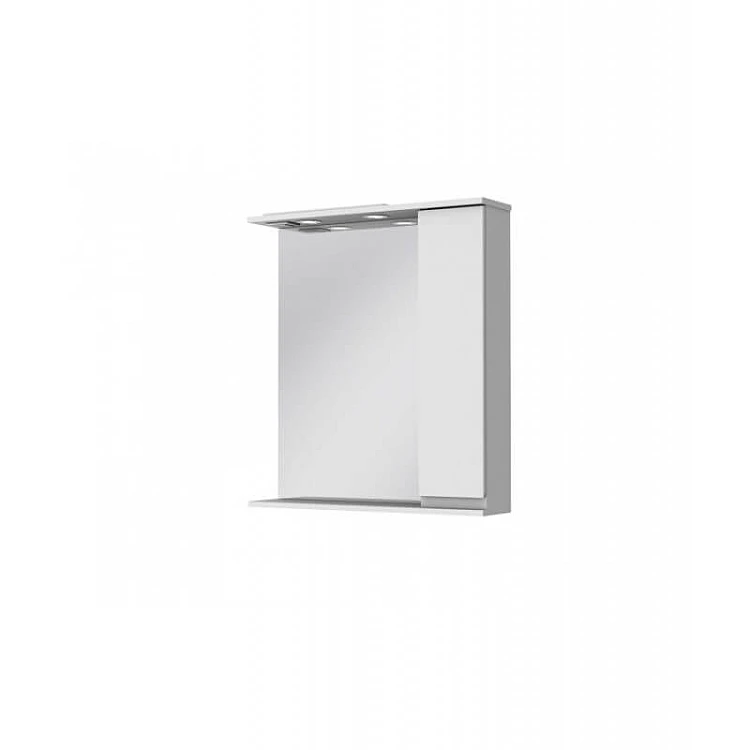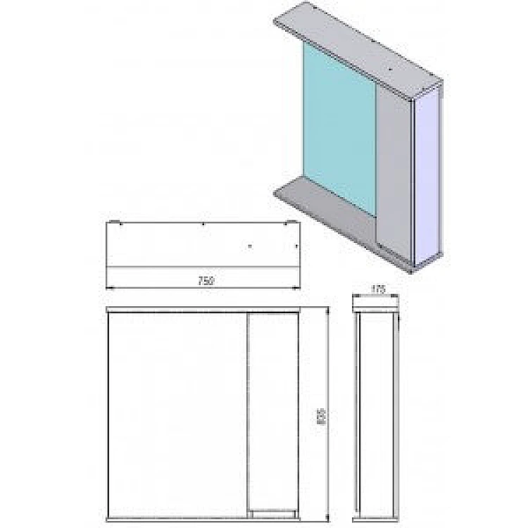 Дзеркальна шафа має одні дверці з правої сторони, внутрішній простір за якими розділено двома полицями, які виготовлені з ДСП двостороннього ламінування білого кольору товщиною 16 мм.
