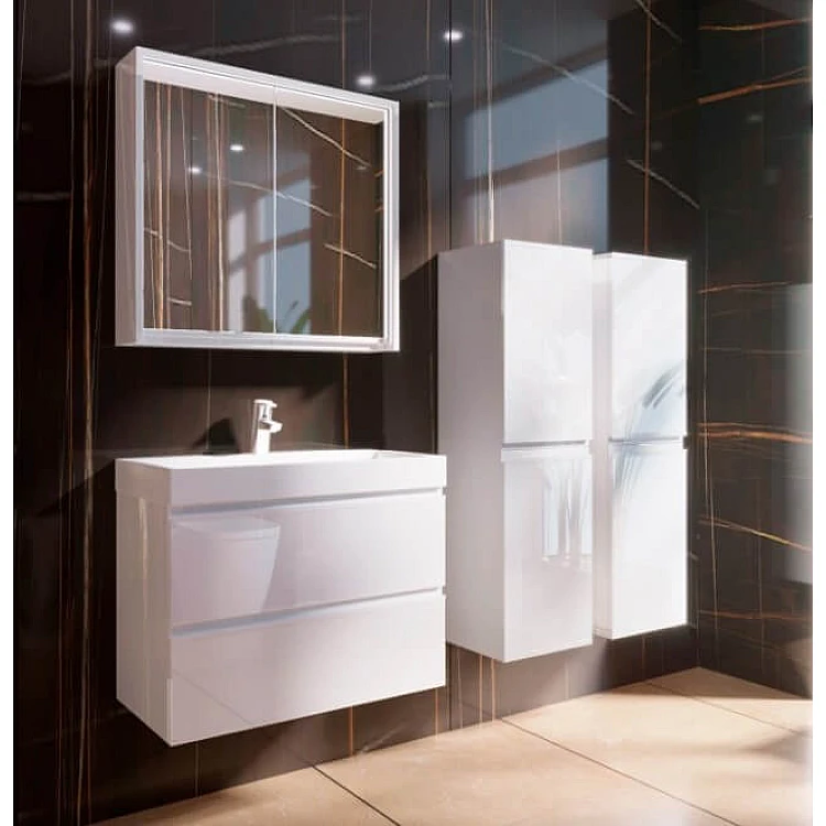 Поверхня меблів покрита високоглянцевою емаллю білого кольору.