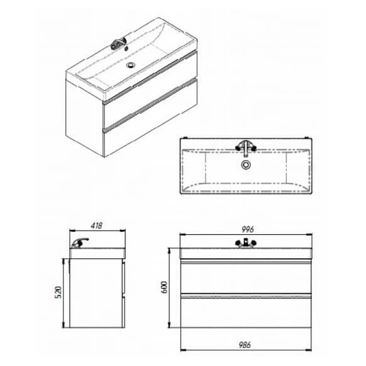 Тумба підвісна, вмонтовані два регульовані навіси.