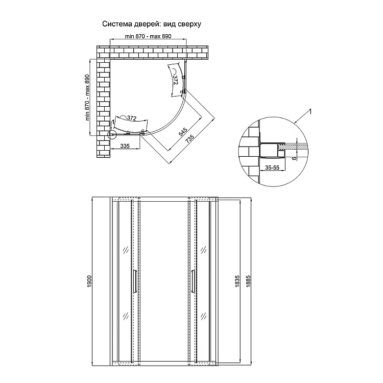 Габарити виробу (ВхШхД), мм: 1900х870х870