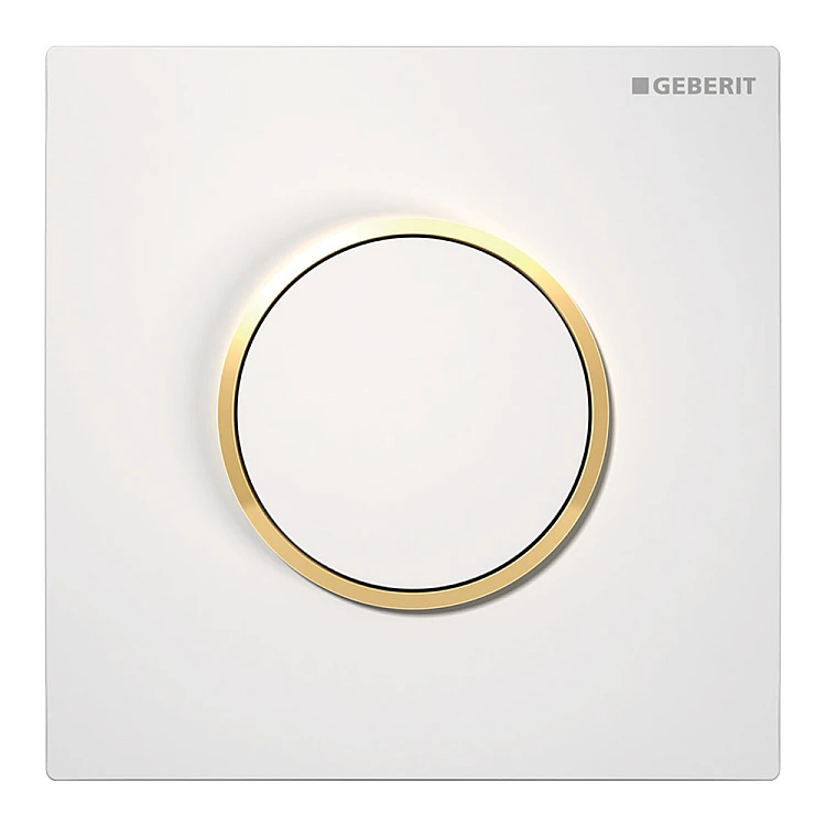 Отримайте AI поради по Система пневматичного керування змивом для пісуара Geberit Round 10 116.015.KK.1 білий/золото