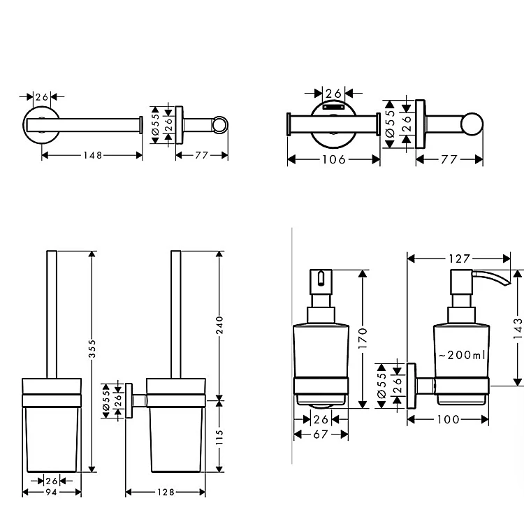 Комплект аксесуарів 4в1 хромовані Hansgrohe Logis Universal 20210004