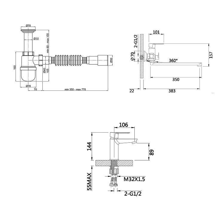 Отримайте AI поради по Комплект для ванни Lidz Latwa змішувач для умивальника LDLAT001WHI45423 змішувач для душу LDLAT010WHI45426