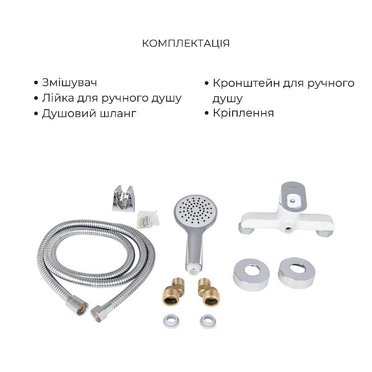Комплект для ванни Lidz Latwa змішувач для умивальника LDLAT001WHI45423 змішувач для душу LDLAT010WHI45426