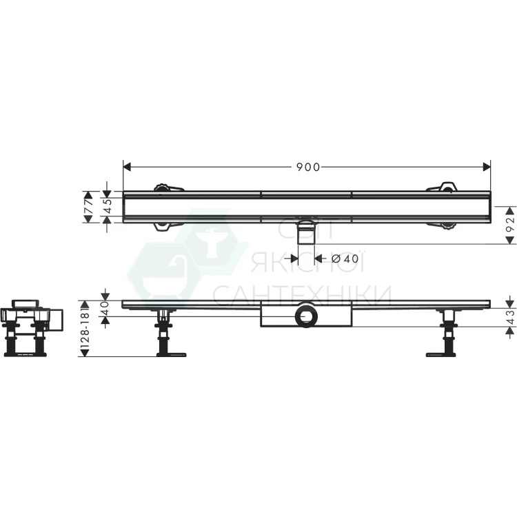 Комплект душового трапу для плоского монтажу Hansgrohe RainDrain Compact 56168800 900 мм