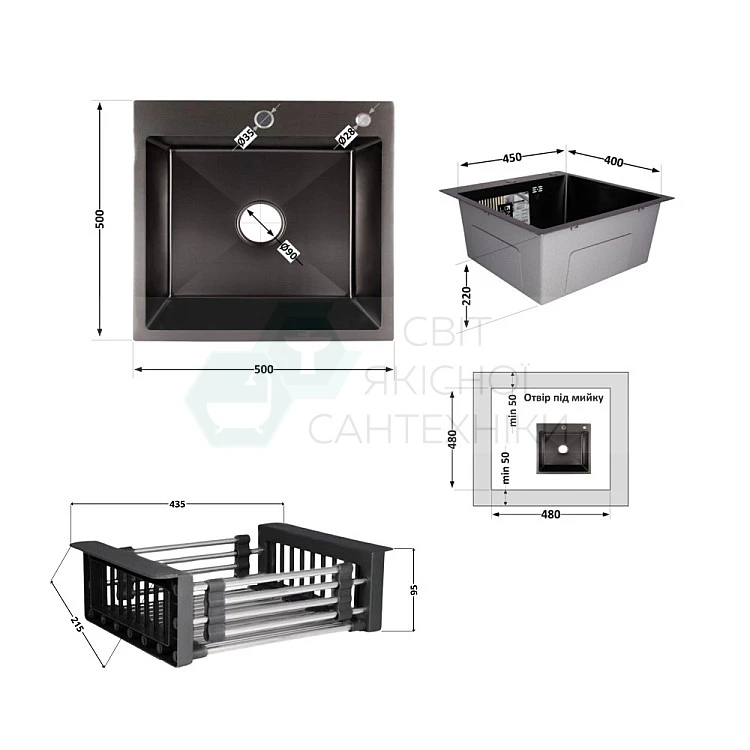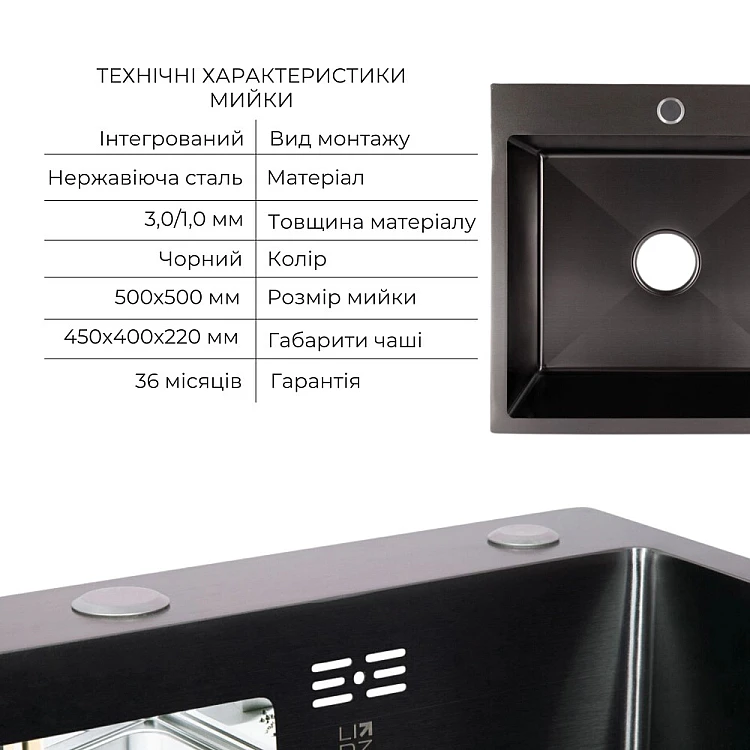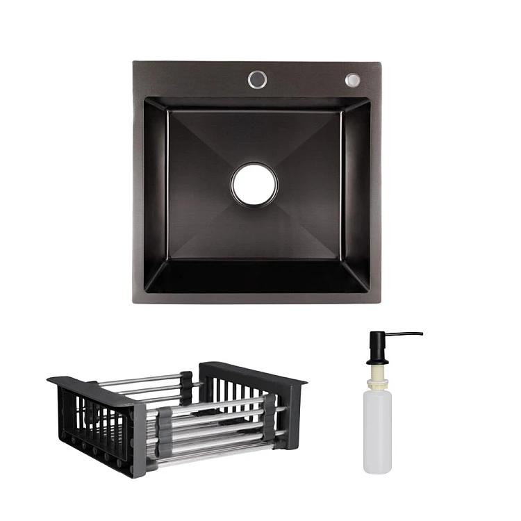 Отримайте AI поради по Комплект мийка для кухні інтегрована Lidz Handmade H5050B BlackPVD у комплекті з дозатором та корзиною
