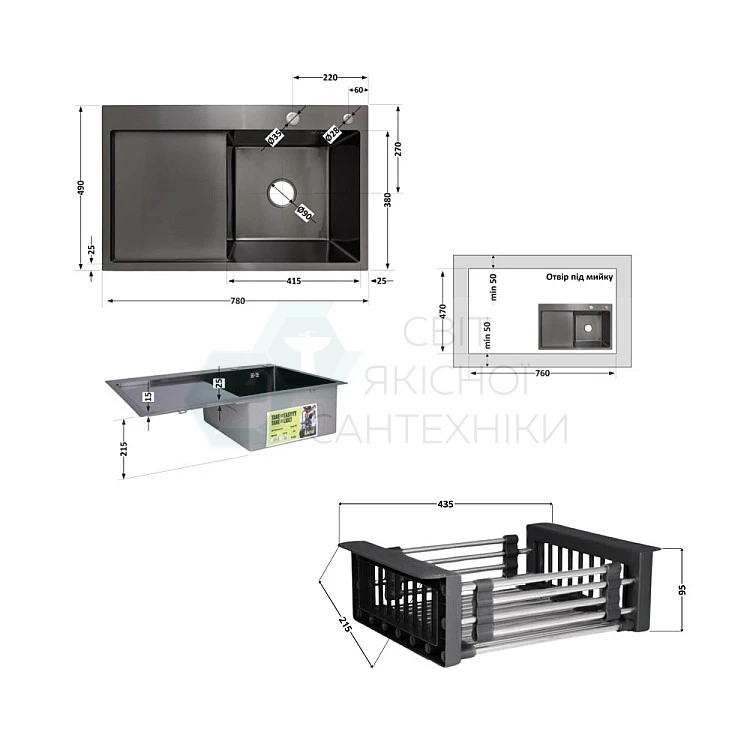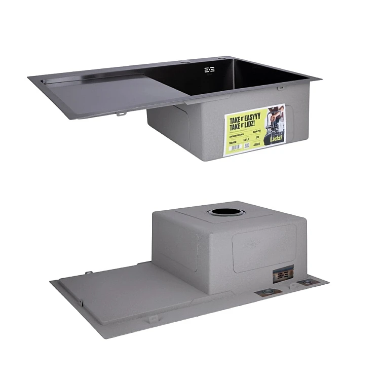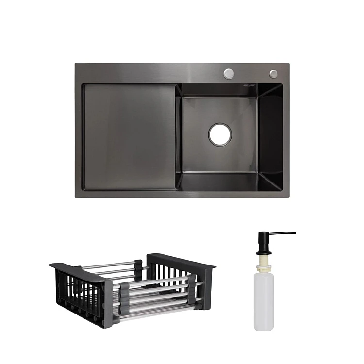 Отримайте AI поради по Комплект мийка для кухні інтегрована крило зліва Lidz Handmade H7849BL BlackPVD з дозатором та корзиною