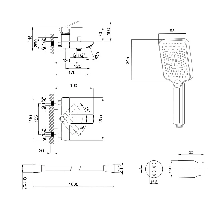 Характеристики - Комплект Qtap Lipno змішувач для ванни з душовим комплектом QTNH3023101DCB47271 чорний матовий