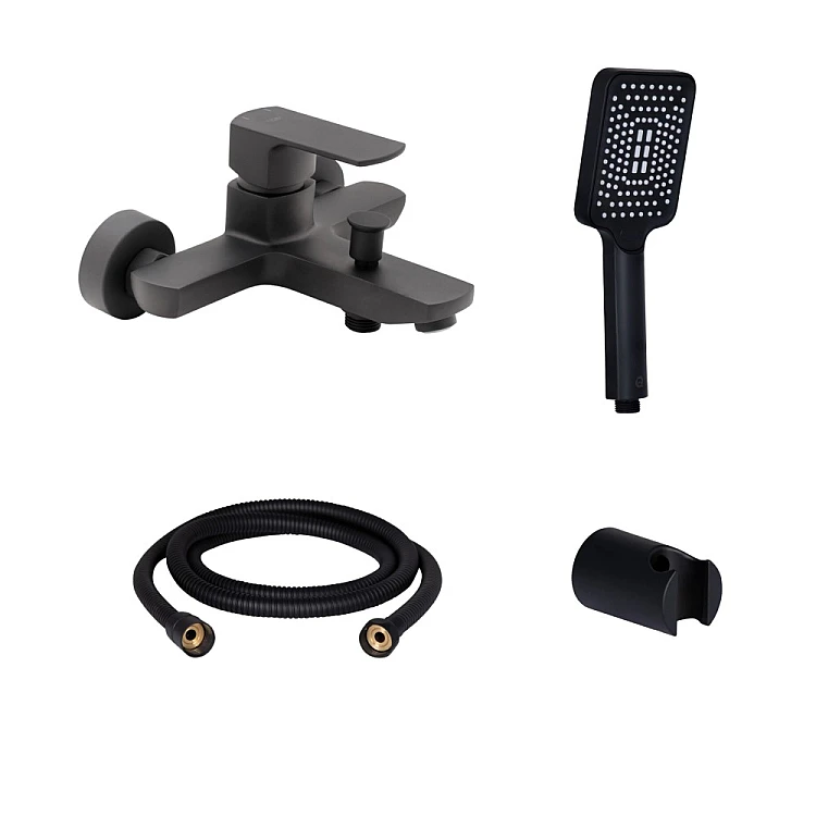 Опис товару - Комплект Qtap Lipno змішувач для ванни з душовим комплектом QTNH3023101DCB47271 чорний матовий