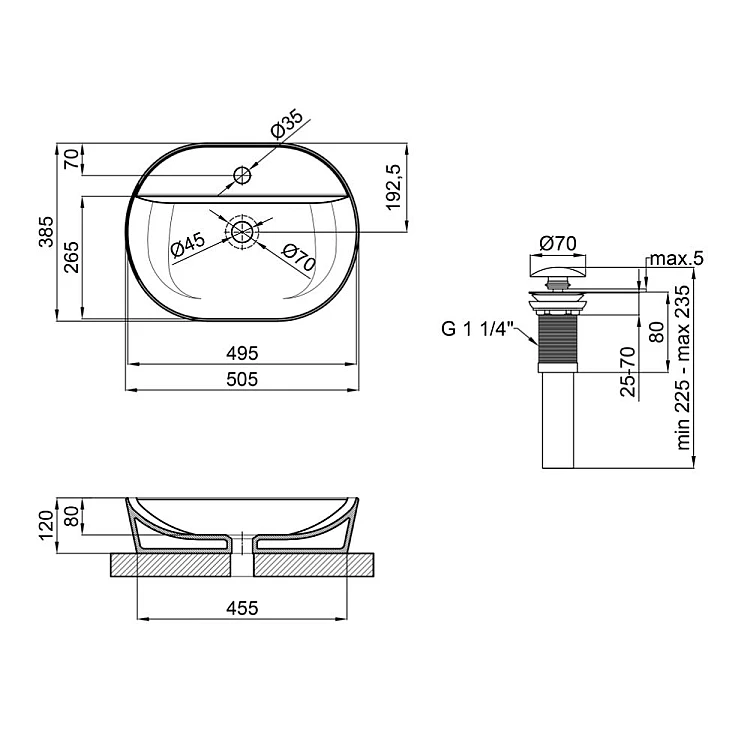 Умивальник накладний Qtap Scorpio 50x38 з донним клапаном PU02 білий