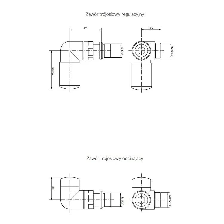 Комплект вентилів Terma Vision All in One трьохосьового типу призначений для підключення рушникосушок та радіаторів до системи водяного опалення. Праве виконання та чорне матове покриття гармонійно поєднуються з сучасними інтер’єрами ванних кімнат. Трьохосьова конструкція забезпечує універсальність підключення та акуратний монтаж. У комплект входить усе необхідне для