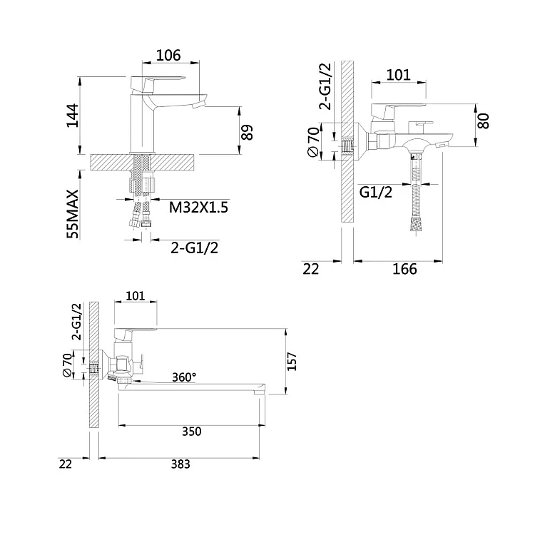 Комплект змішувачів для ванної Lidz Latwa LDLAT001BLA4541847573