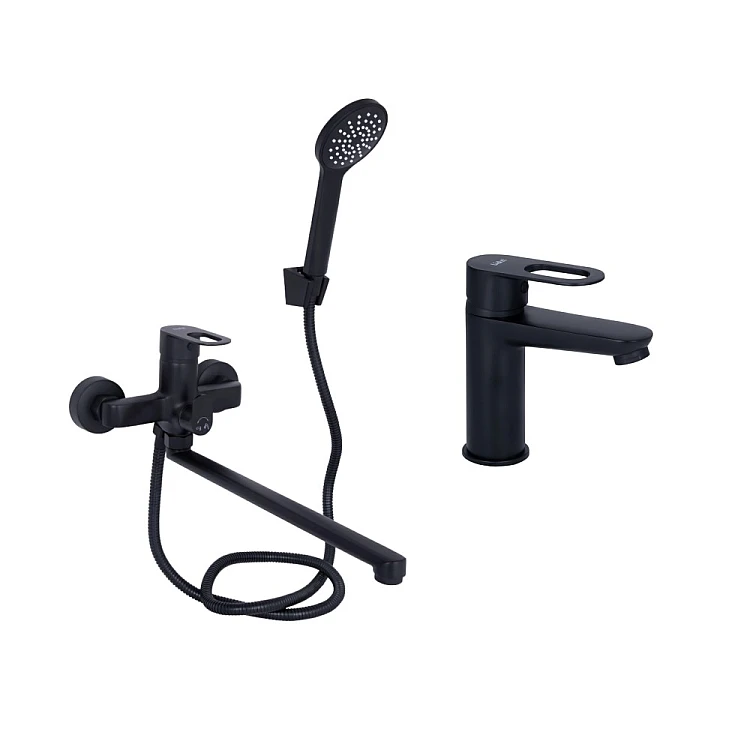 Комплект змішувачів Lidz Latwa Black: змішувач для раковини LDLAT001BLA45418 та змішувач для ванни LDLAT005BLA45420